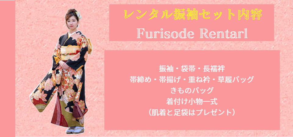 【内容】振袖・帯・振袖小物・着付け小物などが揃った、振袖フルセットレンタル