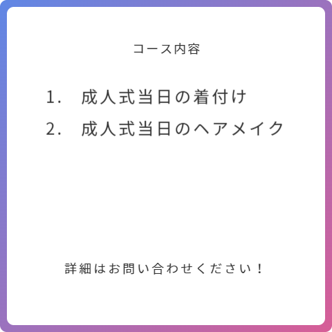 - 前撮りや成人式当日に担当するプロの着付師さんや、提携美容室さんの着付けの技術などの情報交換を常に行っております。