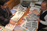 染色と型の決定をうめね。染めを京の名工 浅岡信之氏。そして染める生地は純国産ブランドシルク100%「世紀21」を使用しました。世紀21は「日本の絹」純国産証紙付です。
