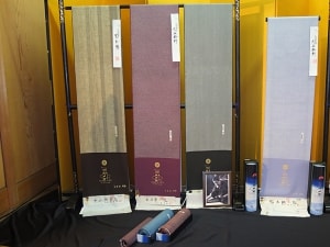 ※浅岡氏の大野国染工場の型染訪問着が「第85回誂友禅染協議会作品展」において、トップ賞の経済産業大臣賞に選ばれました。鮫小紋など多彩な型紙を駆使して制作した絵羽小紋です。