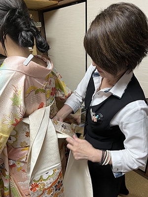 着付けについてのご案内 (成人式) | ○成人式当日は当店のお客様のみのご対応とさせていただきます。他店でのご購入品・レンタル品のお持込はお受けできません。 ○当店でご成約いただいたご本人様の成人式当日の着付けには時間外料金はいただきません。 ○プレミアコースのレンタルは着付け無料です。 ◯ママ振りコースご契約の方は着付け無料です。 |