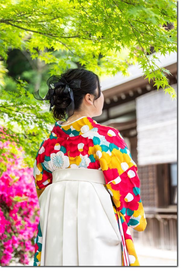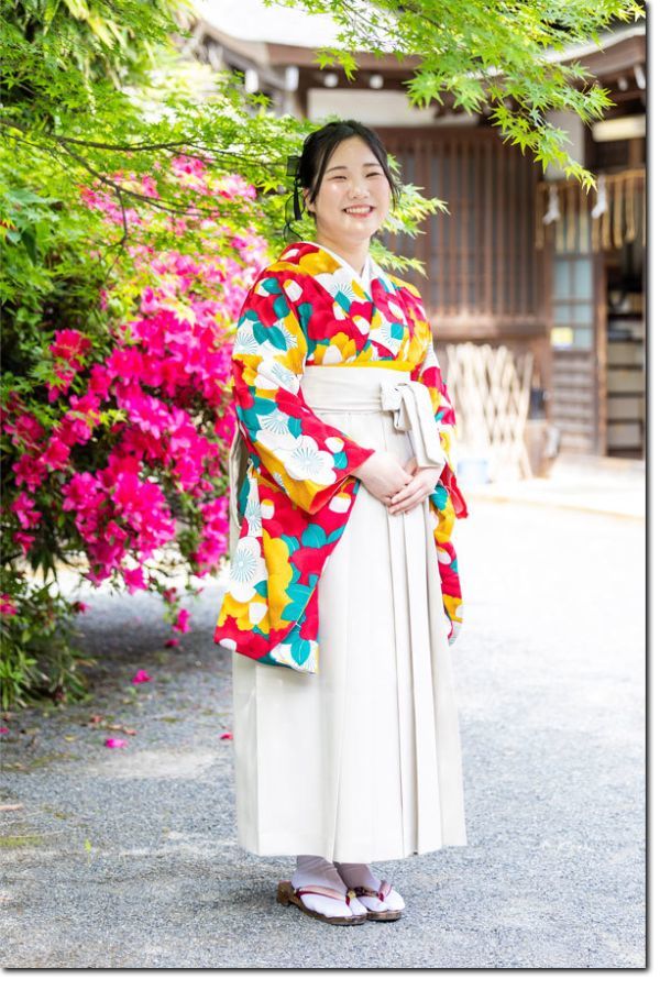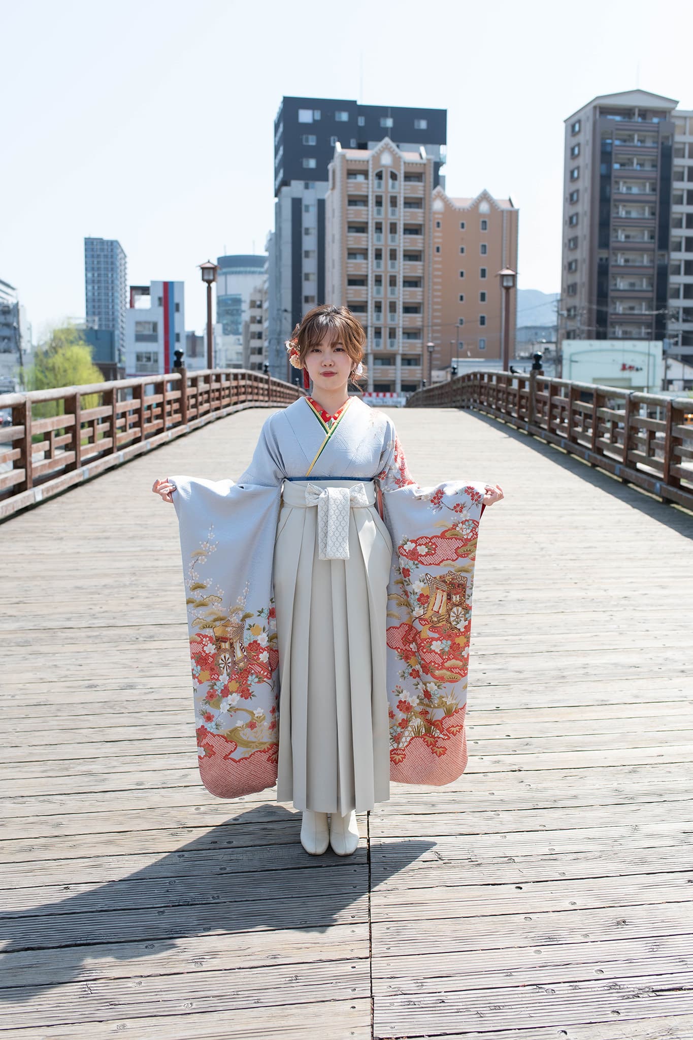 うめね呉服店で、振袖ご購入の方は「無地ぼかし」の袴レンタル料金が無料です。